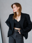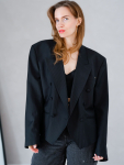 Vintage Vibes sort dobbeltradet blazer – No 153 fra LÉ MOSCH, skøn og unik mellemlang blazer, cool og enkel dobbeltradet sort blazer,