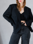 Forsiden / Tøj / Tøj / Vintage Vibes sort dobbeltradet blazer – No 153