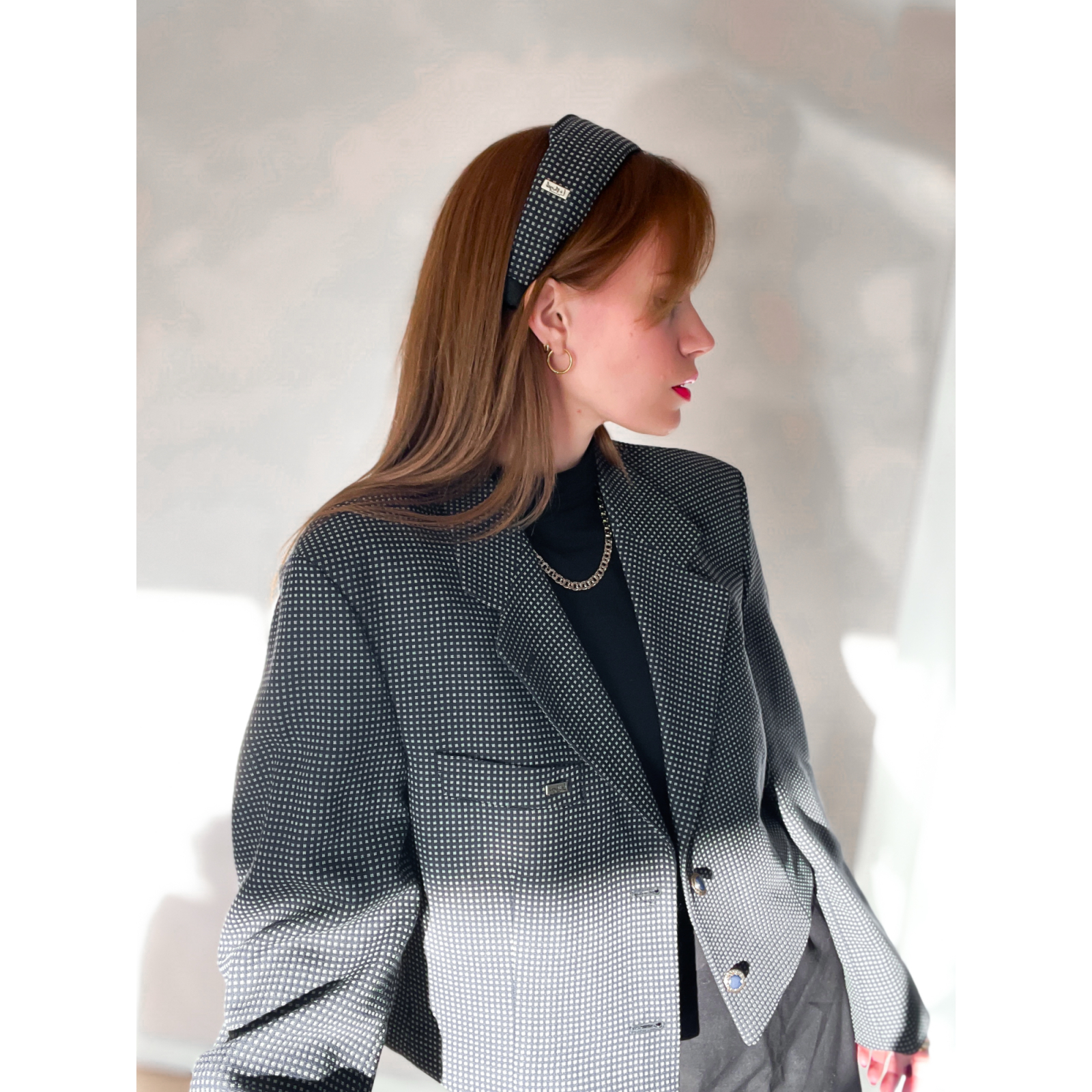 Det nedtonede ternede look giver et klassisk og stilet udtryk. Den brede facon understreger det! Du kan nemt skabe kontrast til feminine kjoler, eller bruge hårbøjlen som en ekstra fin detalje til dit hverdagsoutfit. Hårbøjlen er ca. 6 cm. bred.