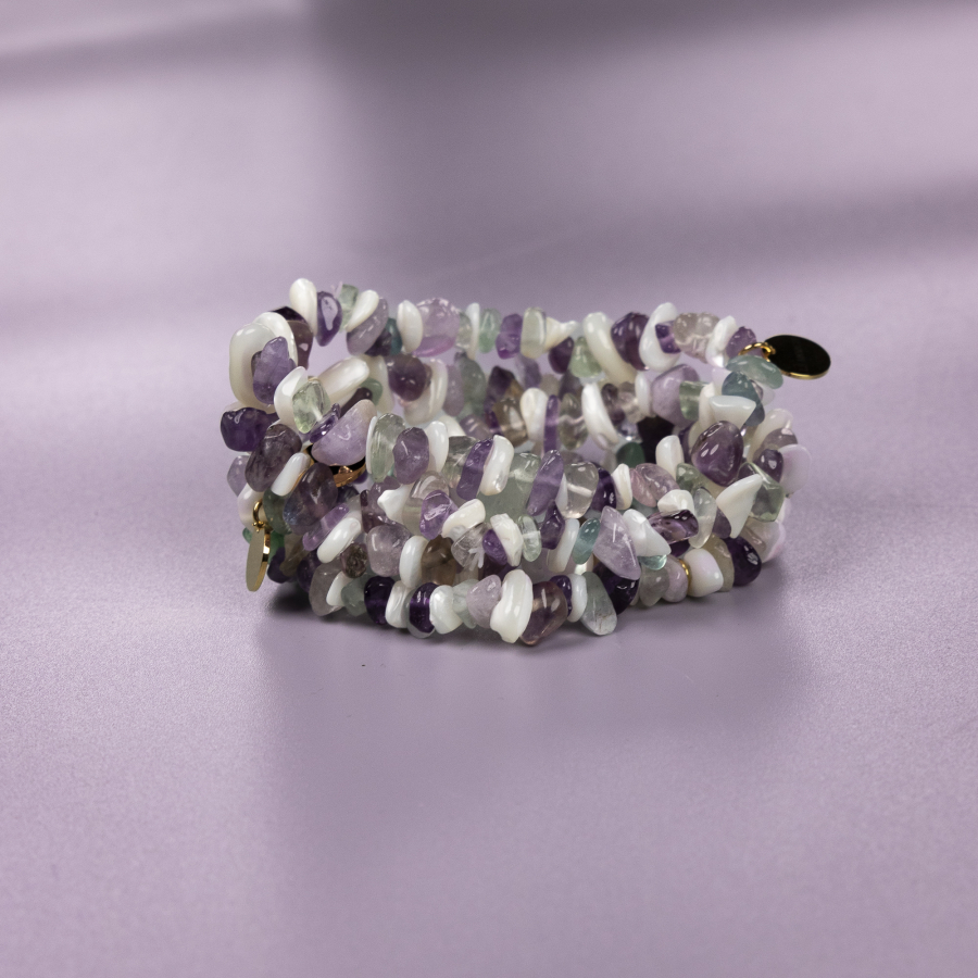 Lucky Armbånd med Amethyst, Fluorite og Hvid Pearl Shell
