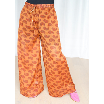 Varenr.: 2950523 | GTIN 05714441001766Unikke ONESIZE bukser med brede ben. BEMÆRK at bukserne er produceret i vintage sarier, så der kan være små fejl i materialet, som f.eks. mindre pletter, små trådfejl, små huller, lapper og print fejl.