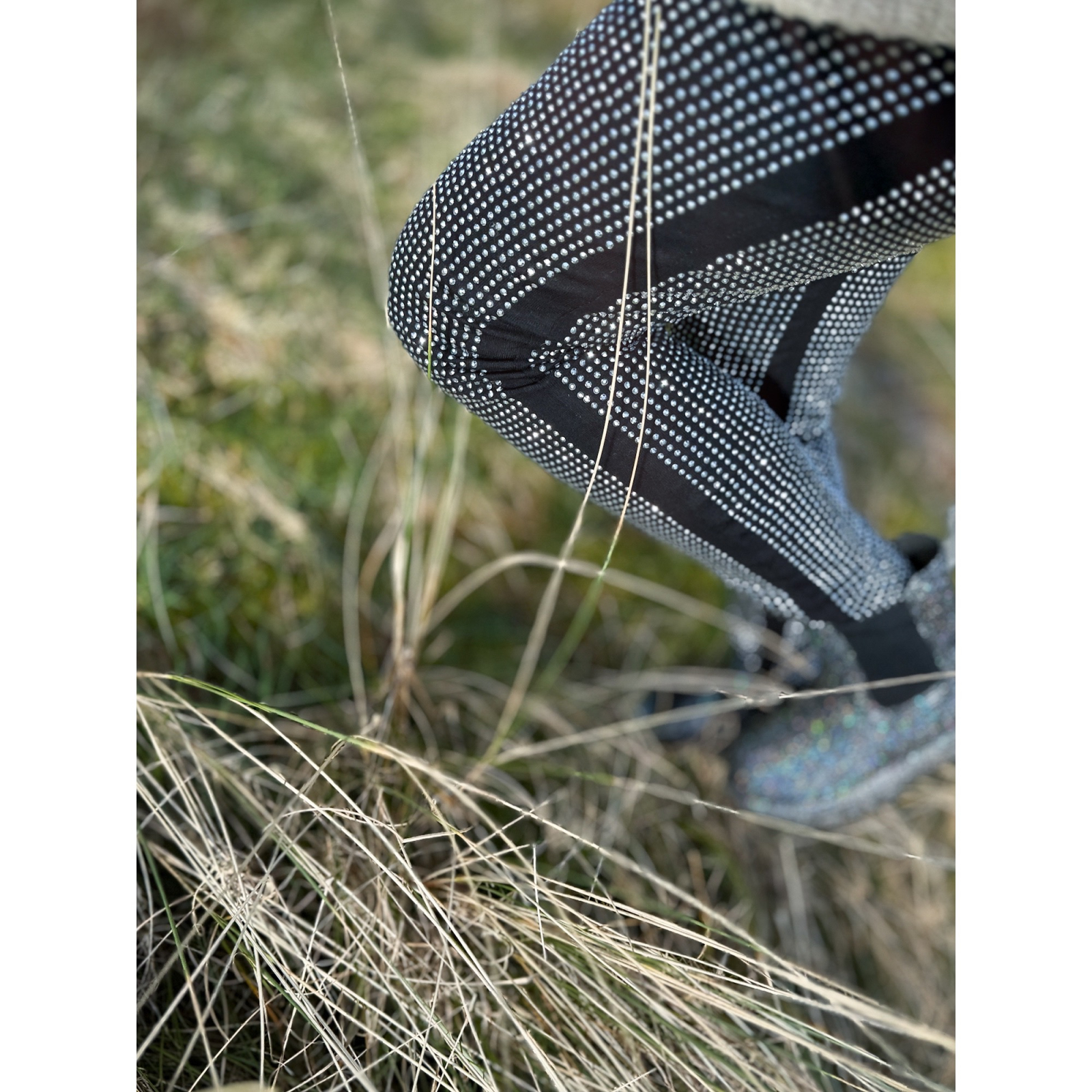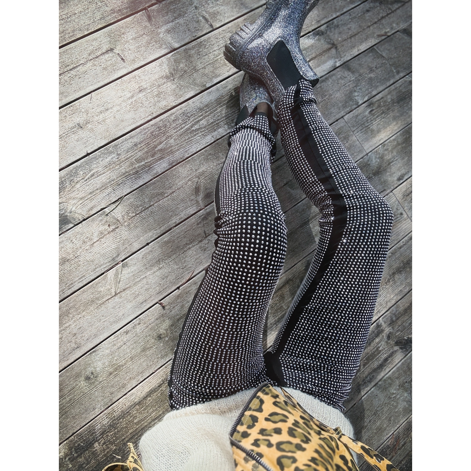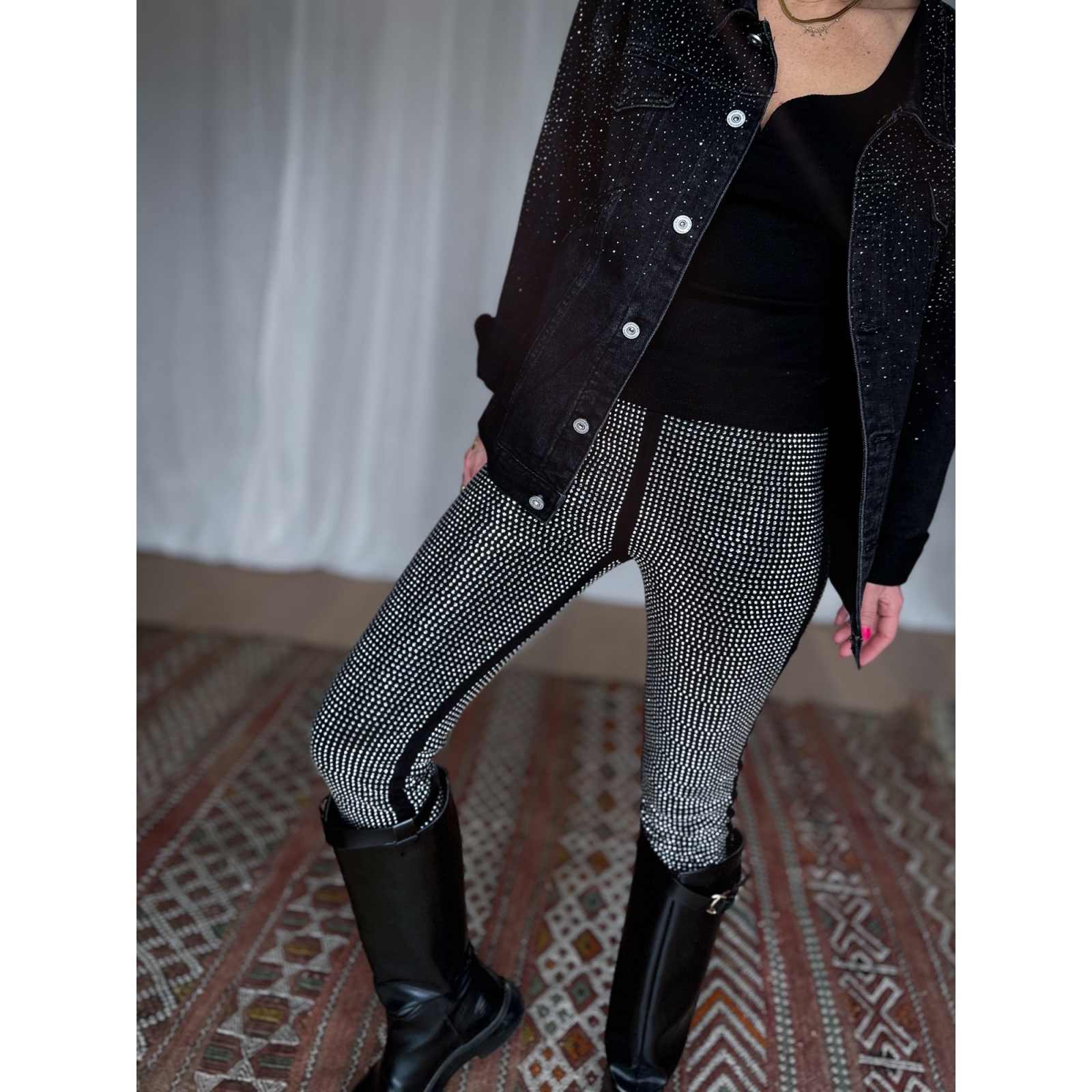 Vores leggings med nitter / rhinsten er simpelthen så cool! En iøjnefaldende og ikke mindst festlig tilføjelse til garderoben, som man altid kan bruge. De giver lige dit look det ekstra, uanset om du bruger dem med en kort overdel eller en længere kjole, blazer eller bluse. Det ser bare altid fedt ud med lidt "shine", så du kan ændre hele dit look med de her glitrende leggings. De skinnende og funklende nitter tilføjer en masse glamour til ethvert outfit.
