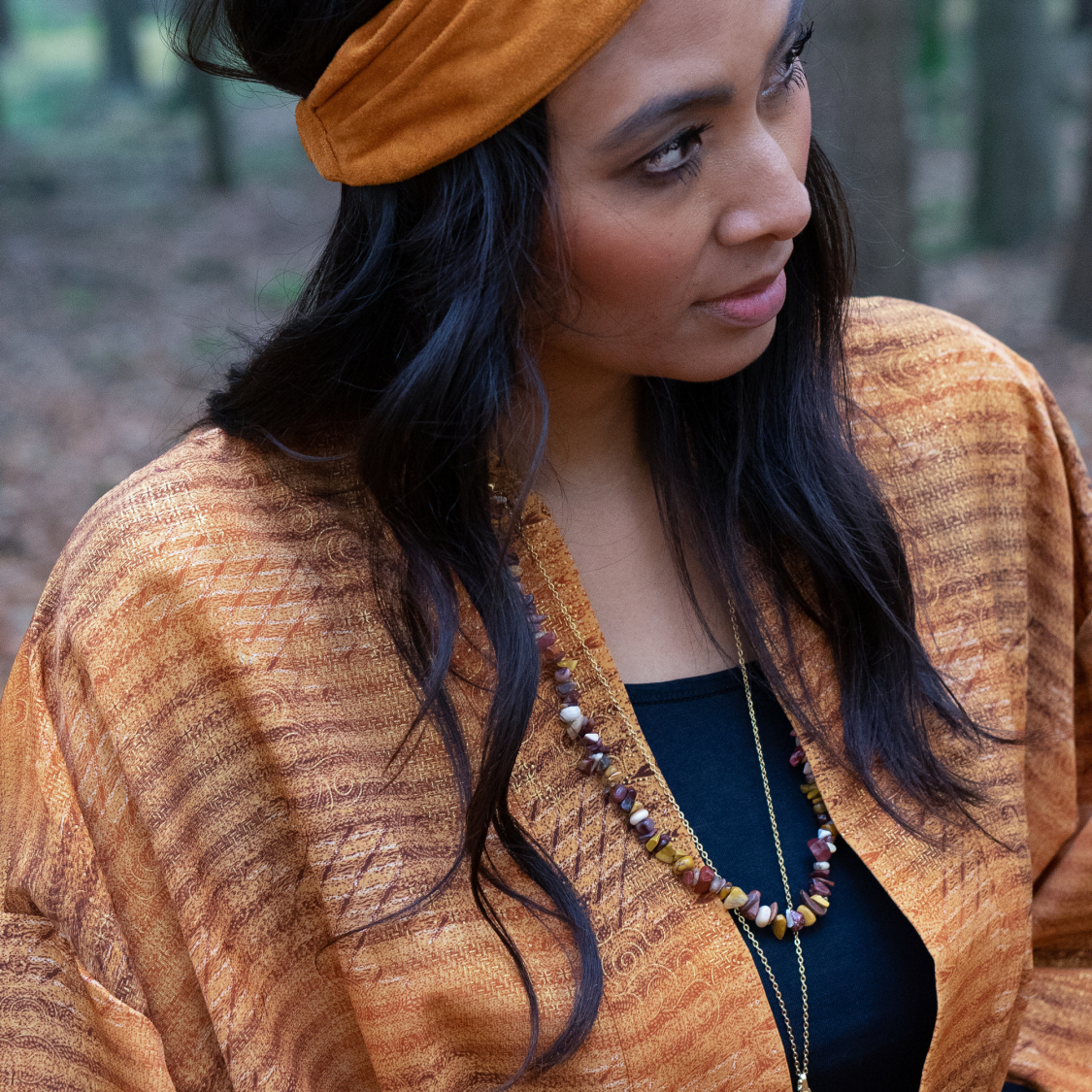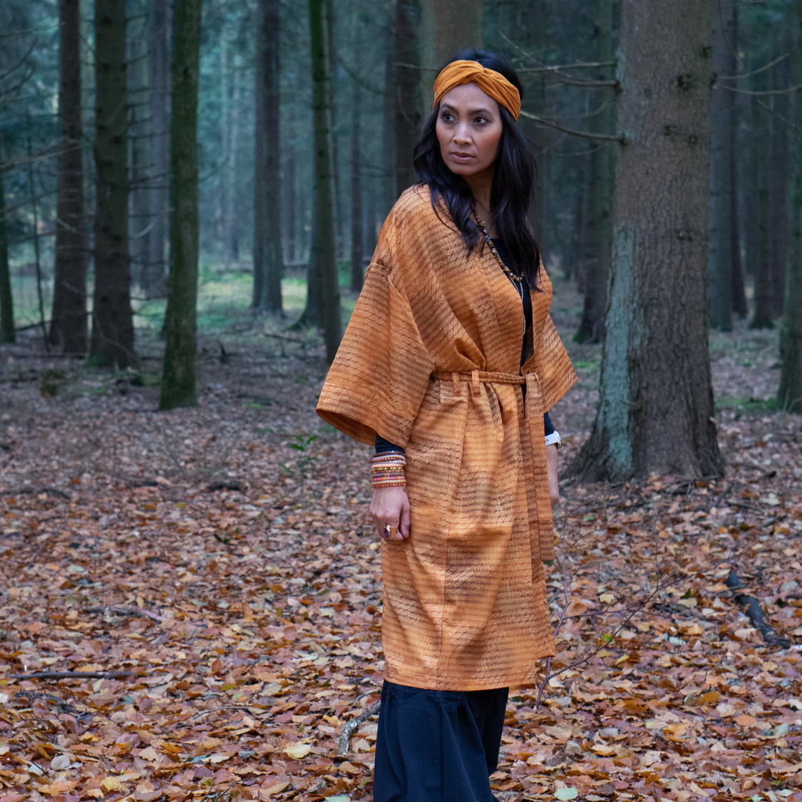 ONE SIZE (str 36-44) Kimonoen er 120 cm fra nakken og ned til knæet ca.